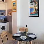 Vauban Limanı'den 2 km uzaklıkta kalan Studio Terrasse Face A La Plage Juan Les Pins dairesi, denize sıfır bir konumda denize nazır konaklama imkanı sağlar. Elektrikli su ısıtıcısı, buzdolabı, fırın ile donatılmış ufak mutfak sunulmaktadır.
